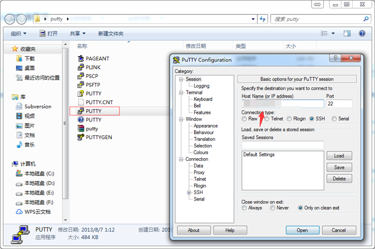 2)軟件下載后解壓,打開putty并輸入云服務(wù)器的IP地址,端口號為默認(rèn)