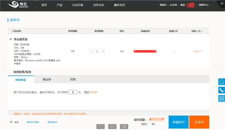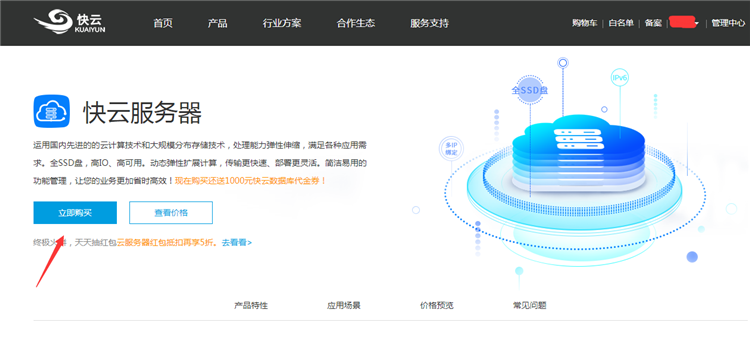 2)選擇--產(chǎn)品--快云服務(wù)器