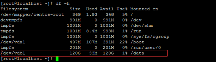 手載掛載數(shù)據(jù)盤,命令:mount /dev/vdb1 /data