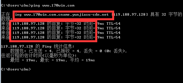 2.如果您已經(jīng)做了cname解析,還是出現(xiàn)解析未生效,因?yàn)檫@個(gè)顯示可能會(huì)有延遲,您可以通過(guò)ping的方式查看是否真正的接入了,見(jiàn)下圖: