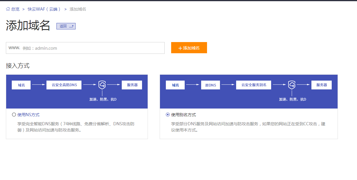 1. 在景安或者快云官網(wǎng)云安全產(chǎn)品快云WAF產(chǎn)品頁.