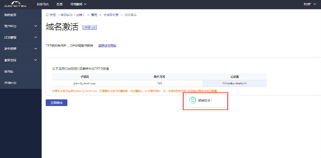 按照下圖所示進(jìn)行域名激活操作.