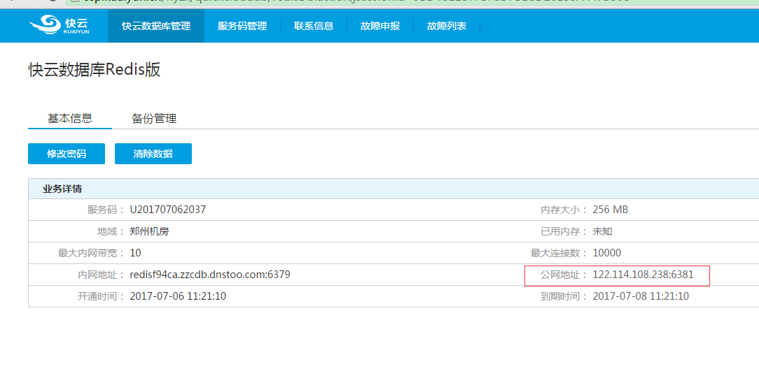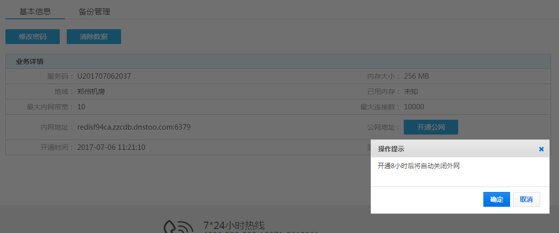 Redis只提供內(nèi)網(wǎng)連接,外網(wǎng)可臨時開通8小時。