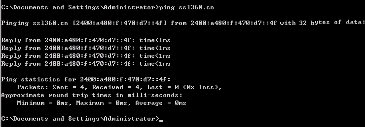 7、登陸網(wǎng)站服務(wù)器,通過(guò)ping域名檢測(cè)IPv6解析是否生效。